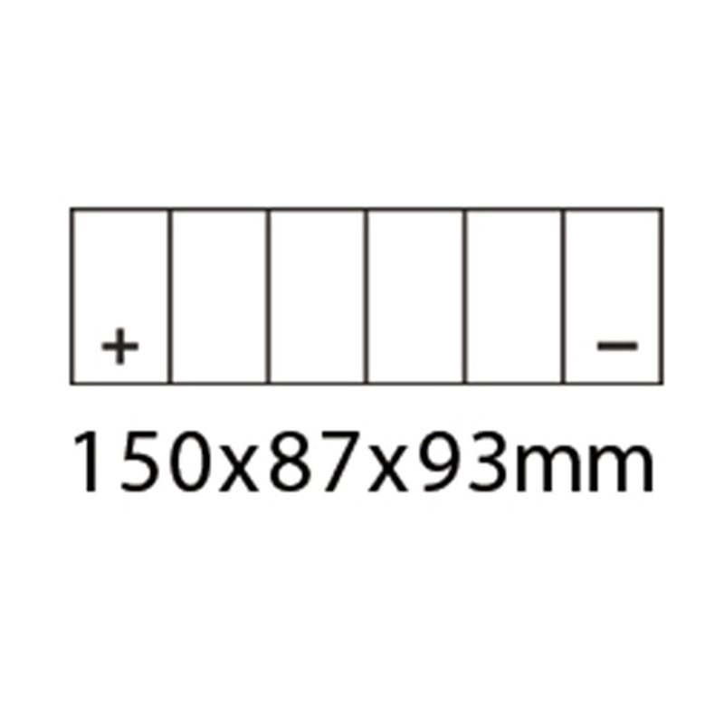 Lead Acid Maintenance Free AGM Series supplied with the electrolyte acid pack.Add the battery electrolyte to each cell as per the instructions and charge the battery before fitting into the motorcycle.12 Volt 6 Ah CapacitySize (mm) - L 150 x W 87 x H 93Ter
