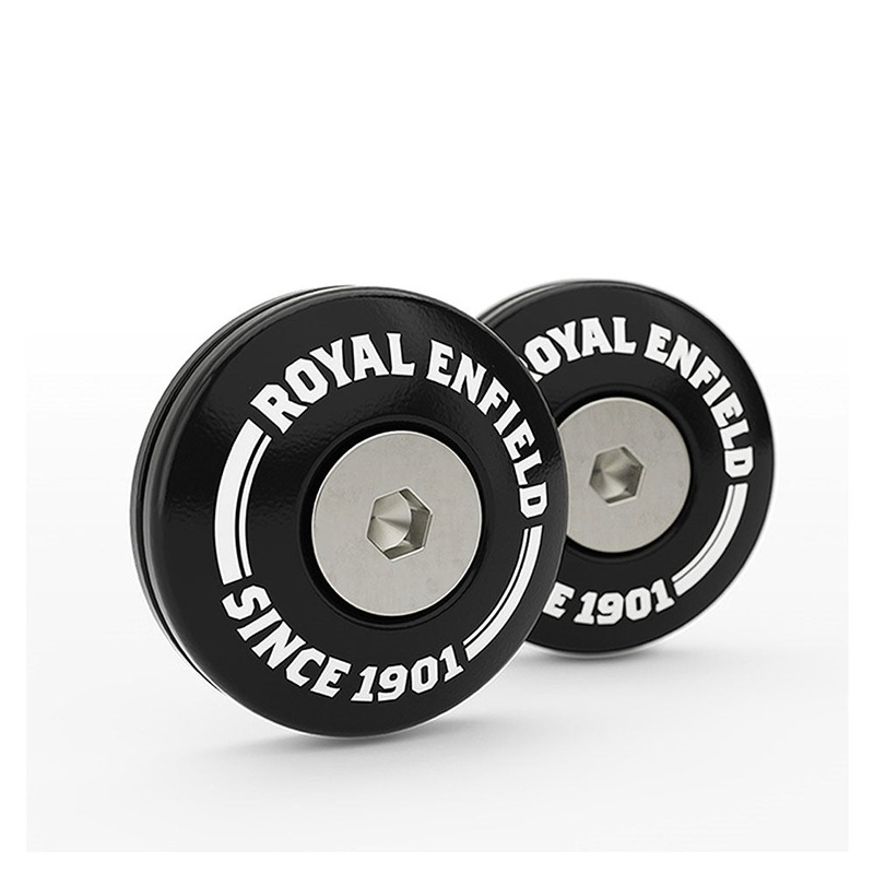 Give your motorcycle that finishing touch with these handlebar finishers. They are machined from billet aluminium, anodized for durability and come with laser-etched Royal Enfield branding for style.