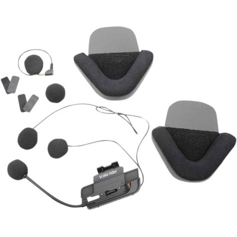 Scala Rider Cardo Audio/Microphone Kit G4/G9/G9X/ For Half HelmetUse your G4/G9/G9x with a half helmetIncludes ultra-slim single and dual plug-in speakers that connect using a standard 3.5mm plugFeatures:Specially designed padded ear curtains for enhanced