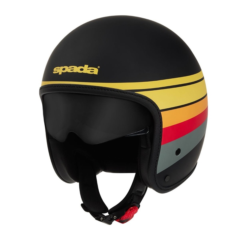 ECE 22.05 homologatedABS shellRemovable liningQuick release buckleGoggle loop at rearSlim profile cheek padsIntegral drop down tinted visor