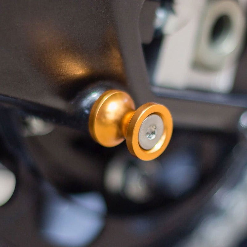 CNC machined swing arm spools. Bolt onto motorbike swing arms enabling bike to be lifted by a paddock stand with hook or fork adaptors. CNC machined swing arm spools Bolt onto motorbike swing arms enabling bike to be lifted by a paddock stand with hook or