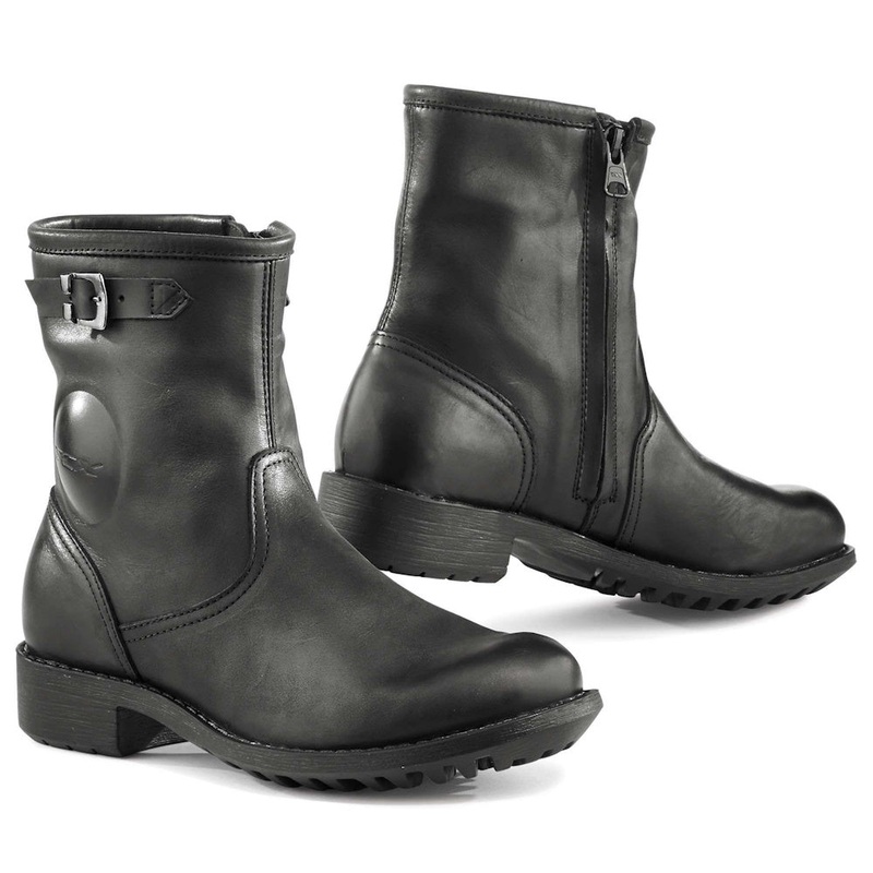 Black Full-grain leather outer T-Dry waterproof lining Malleolus, heel and toe reinforcement inserts Zip closure Adjustable leather band with buckle Anatomic and replaceable footbed Rubber sole with a raised heel and grip area CE approved