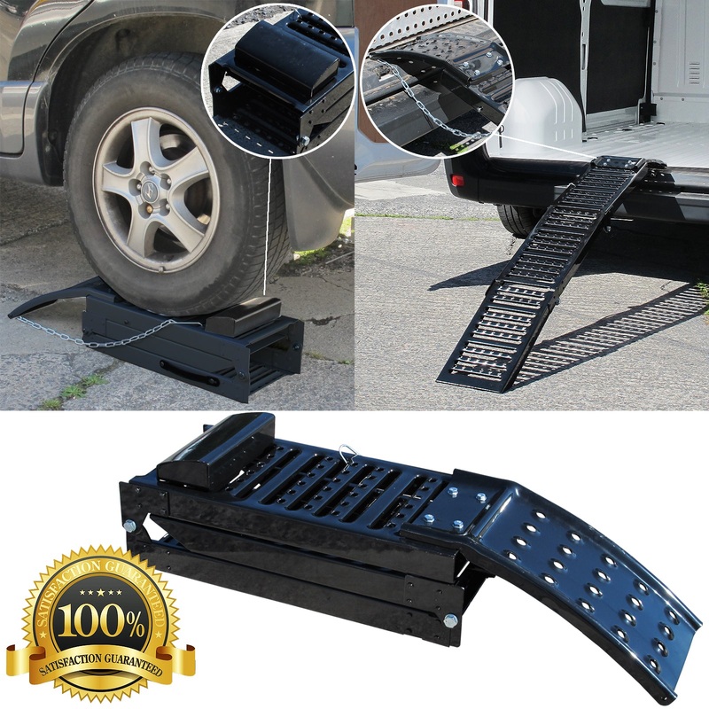 These heavy provide a dual purpose functionality.With an open length of 200cm (160cm+40cm) these ramps are perfect for loading wheeled vehicles such as Motorcycles, Quads, ATVs, mobility scooters, Golf Carts etc into the back of a van or onto the back of a trailer or pick-up truck etc. When folded up these ramps can turn into a handy maintenance ramps for ideal working under your vehicle.