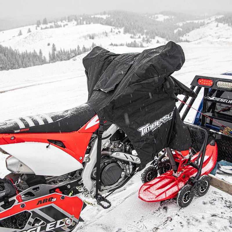 Your Timbersled is more than just a bikeits a passport to your next big adventure. Keep your precious cargo protected from road grime, bugs, rain, snow, and sleet with this durable, quick cover thats easy to install and will give you instant peace of mind. The key here is this cover is easy to install; and using it means no more scrubbing bugs and road grime off your bike; after a road trip. Whether youre transporting your bike in your truck to the next destination or storing it in your garage, protect your bike from the elements with this durable canvas cover.