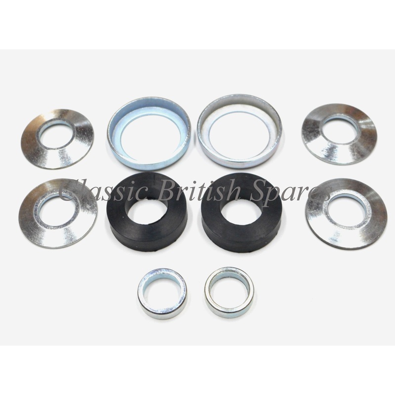 *New!* Top Quality English Made Triumph Handlebar P-Clamp Mounting Kit. Don’t want to be bothered piecing together all the parts you need to mount your P-Clamps? Well this this “All-In-One” kit… there is no need to! Now you can get your P-Clamps back in working order! Comes with everything as pictured! Fits Triumph 650 & 750 Unit Twins (Bonneville, T120R, Tiger, TR7, TR6, T140, etc) up to 1982. Fits Triumph & BSA Triples (Rocket III, A75 & Trident) from 1968-1976. Al so fits BSA Unit Twins (Lightning, Thunderbolt & Firebird Scrambler) from 1971-1972. Please refer to your parts catalog for proper fitment.*****Please note that some models did not use the P-Clamp Set-Up! Check your parts books!*****