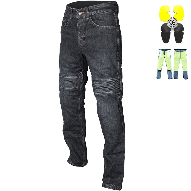 Aramid lined. CE Certified Class AA Traditional 5 pocket design. Hip Armour - CE Approved & Removable. Knee Armour - CE Approved & Removable. Stretchable Panels On Front Knees and on the back of the waist for greater flexibility. YKK zip fly. Double stitch